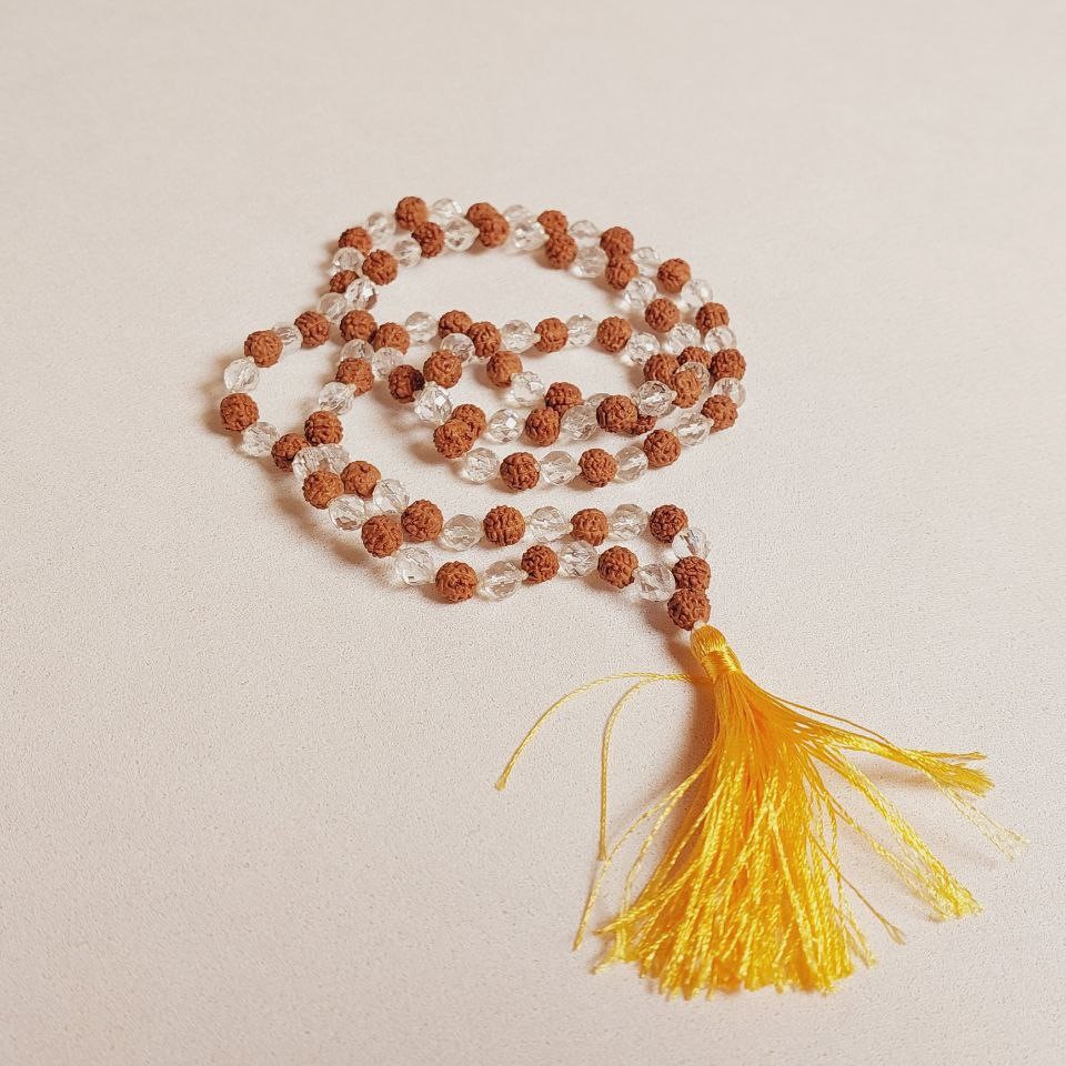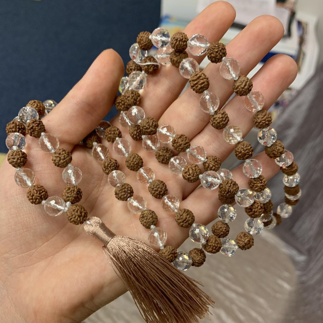 Четки Горный хрусталь и Рудракша, 8 мм