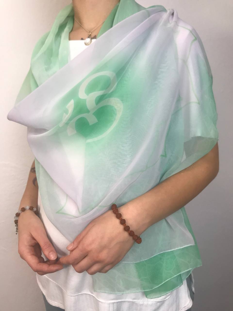 Шифоновый шарф со знаком Ом (зеленый)